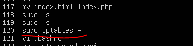 root 가 /sbin/iptables -F 명령어 수행한 결과를 확인할 수 있다.