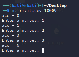 입력한 값을 계속 더해 acc에 저장하는 코드이다.