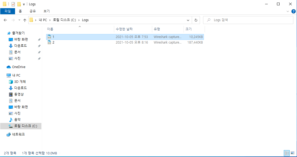 그안에 Wireshark 패킷 캡쳐 파일이 두개 들어있다.