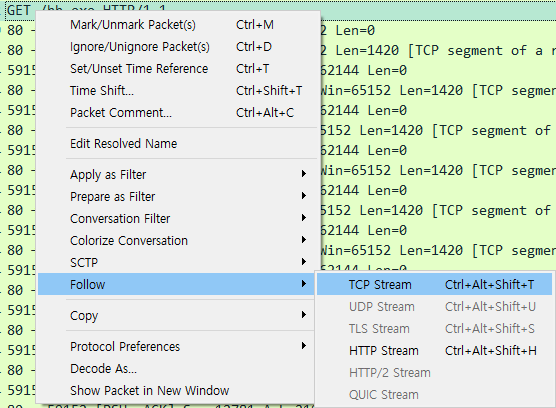 주어진 네트워크 로그 분석을 통해 악성코드를 복원하고, 파일 해시를 구하여라(SHA1)