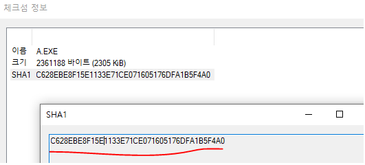 복원한 파일의 SHA1 해시값을 확인하면 된다.