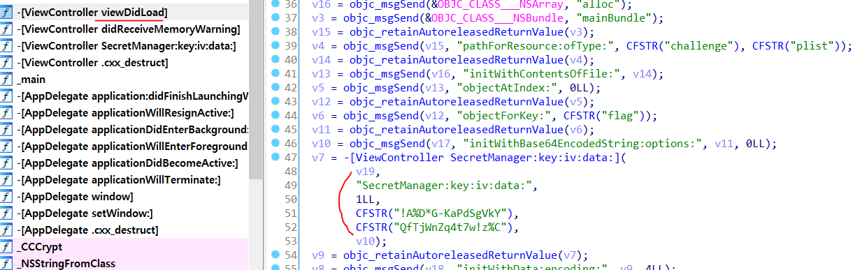 key와 iv에 각각 CFSTR에 있던 값을 집어넣어 주면