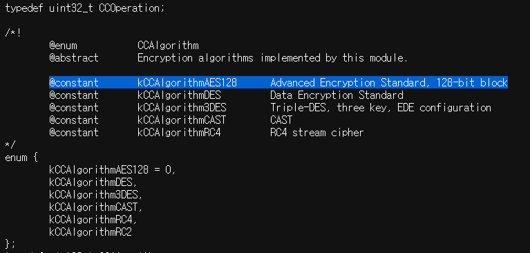 CCCrypt 로 들어가보면 이렇게 나온다.
