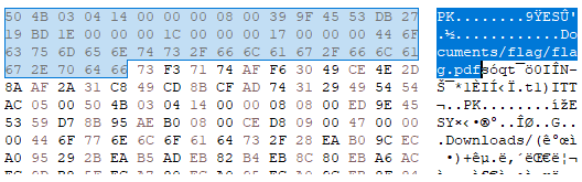 flag.pdf 근처에 있는 값만 복사해서 새로운 zip 파일을 만든 뒤 압축을 풀어주면