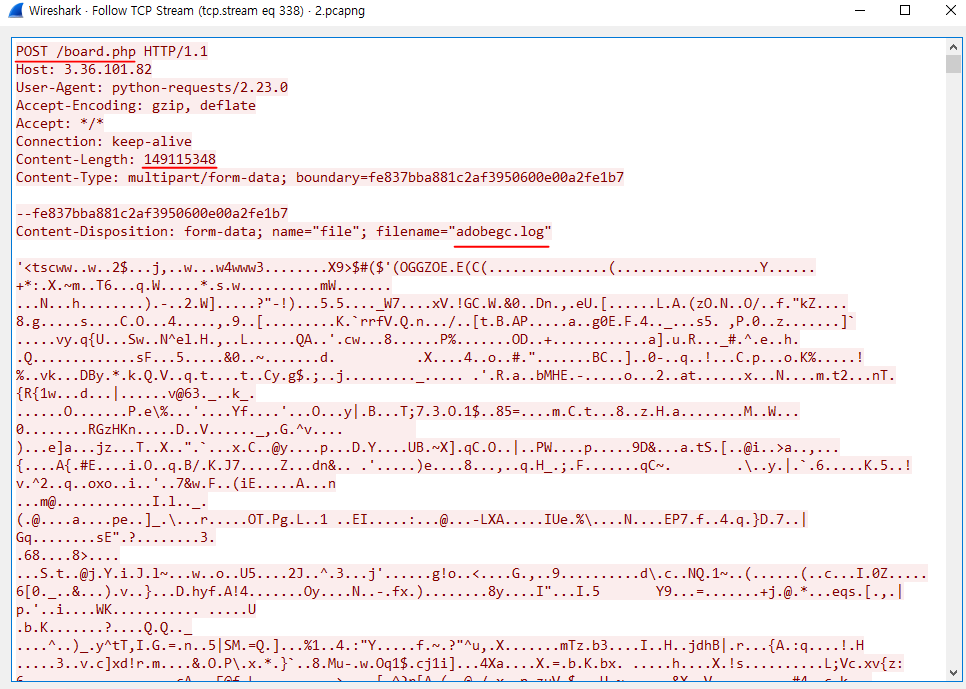 adobegc.log 라는 파일을 전송하고 있는것이 보인다.