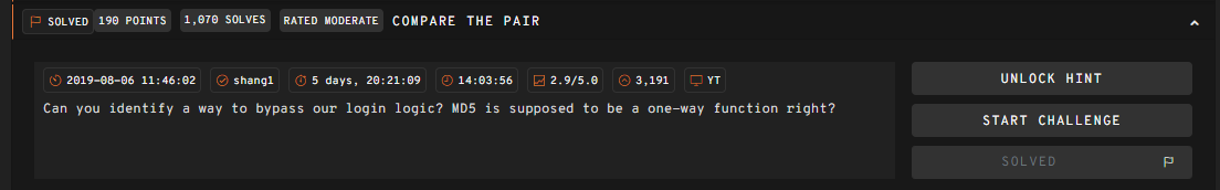 이것을 이용해서 MD5 Magin Hash 라는 것을 이용할 것이다.