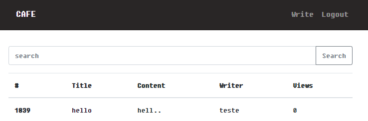 회원가입을 한 뒤 로그인해서 들어가면 이렇게 게시판 형태의 페이지가 나온다.