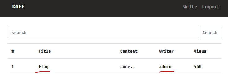 admin 이 작성한 1번 게시물인 flag를 읽으면
