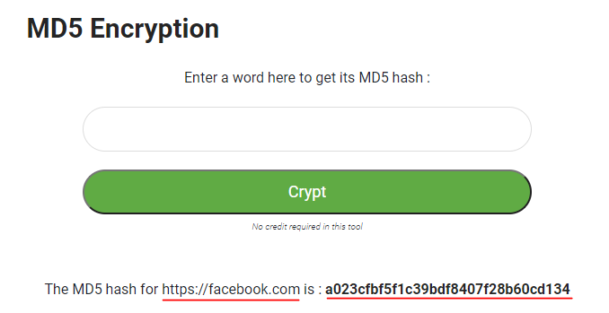 아무곳에나 들어간 뒤에 https://facebook.com 을 그대로 MD5 해시값으로 만들어보면