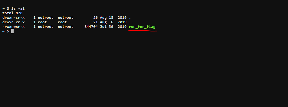 run_for_flag 파일이 있는것을 확인할 수 있고