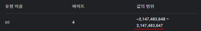 int 형의 경우 표현할 수 있는 정수의 범위가 한정되어 있기 때문이다.