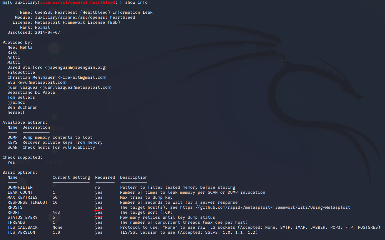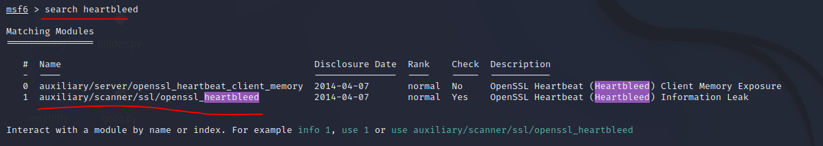 auxiliary/scanner/ssl/openssl_heartbleed 를 선택해준다.