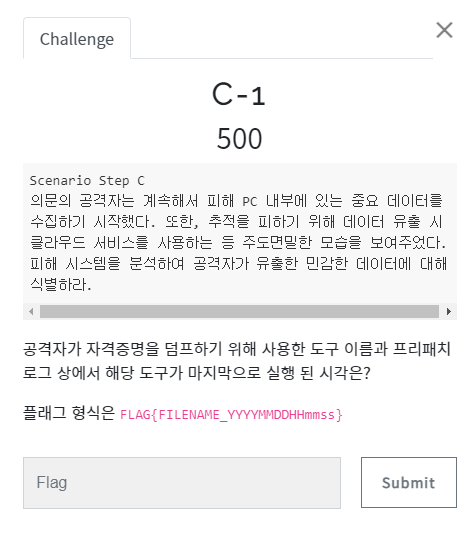 공격자가 자격증명을 덤프하기 위해 사용한 도구 이름과