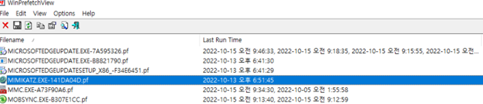이제 프리패치를 확인해서 mimikatz 가 언제 실행되었는지 보기만 하면 된다.