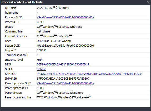 B-3 에서 Sysmon 로그 추출 및 Sysmon View 사용법에 대해 작성했었다.