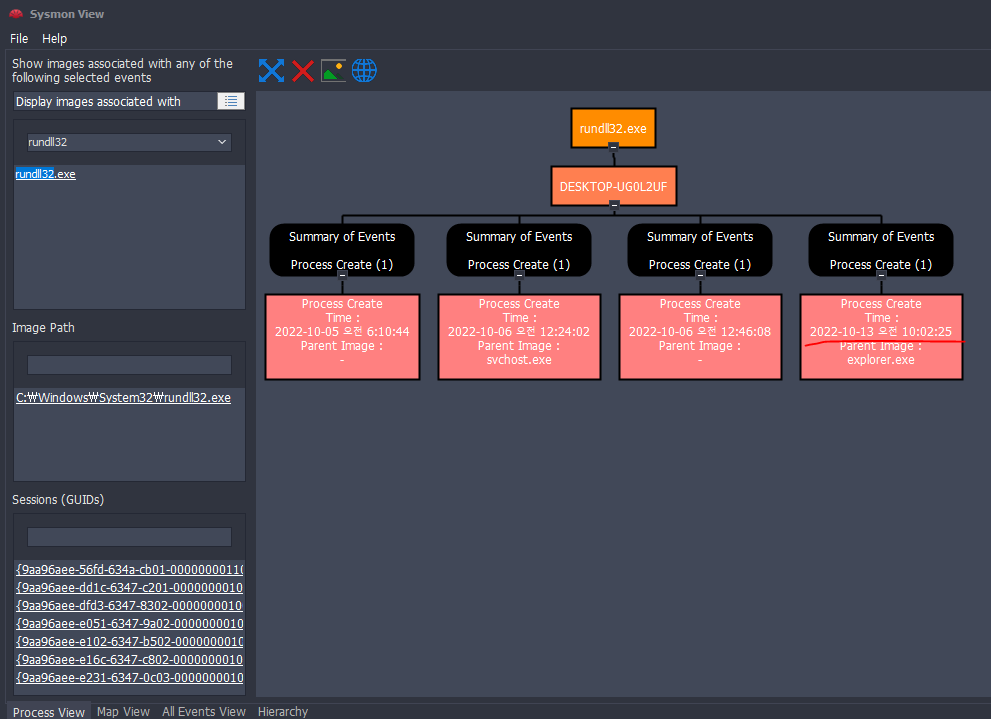 B-3 에서 Sysmon 로그 추출 및 Sysmon View 사용법에 대해 작성했었다.