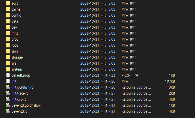 안드로이드 시스템 파일과 폴더들인것 같다.