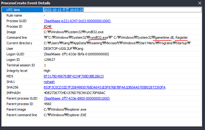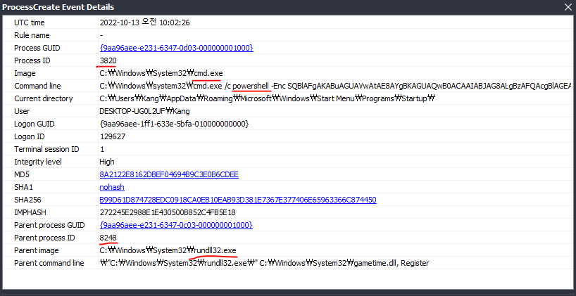Sysmon 로그에서 본 2022-10-13 19:02:25 이고,