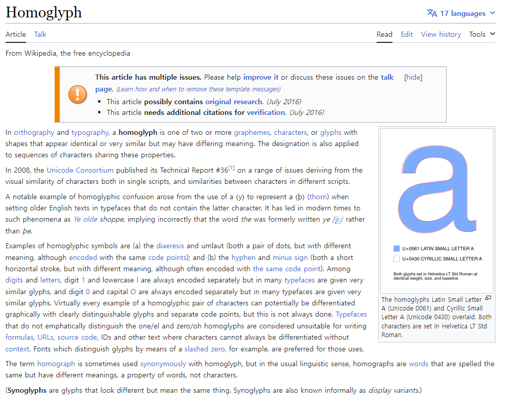 간단하게 똑같이 생겼는데 다른 문자라고 이해하면 되는것 같다.