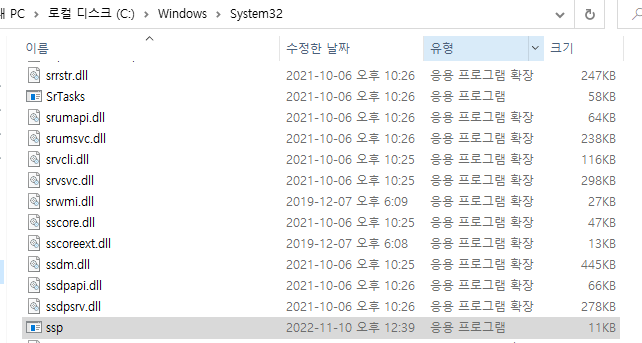 System32 폴더로 가면 실제로 ssp.exe 가 있는것을 확인할 수 있고
