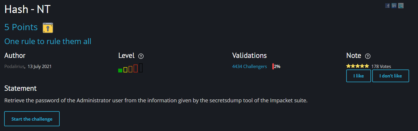 secretsdump 도구 사용 결과로부터 알아내라고 한다.
