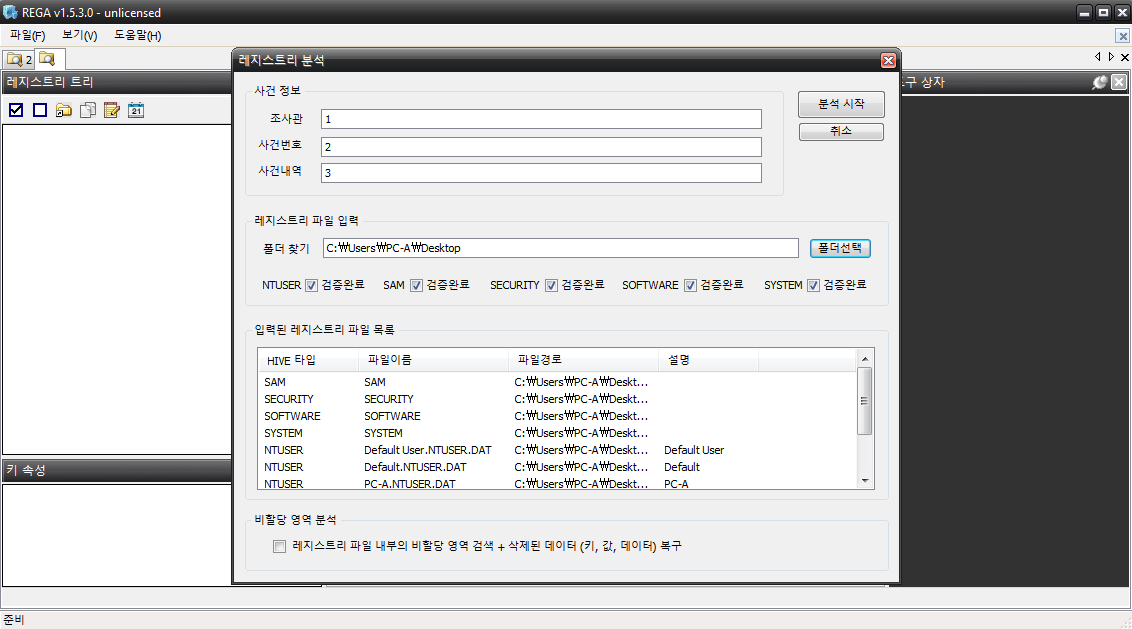 하이브 파일을 수집하고, 저정할 폴더를 지정해 준다.