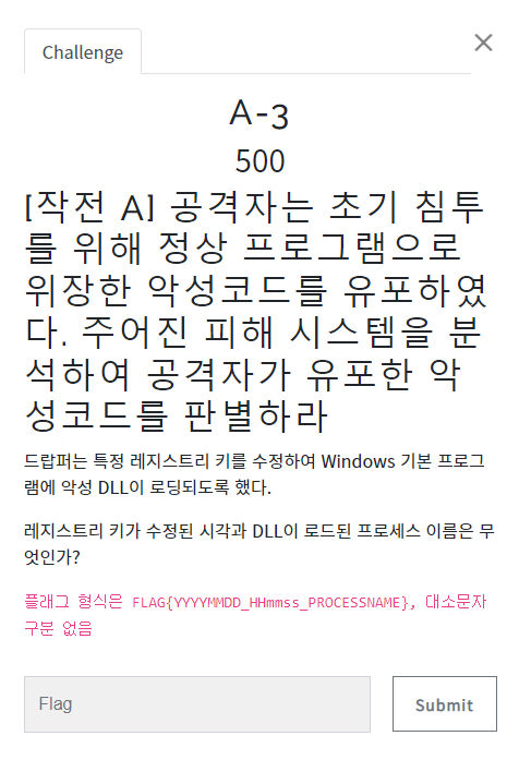 이 때 레지스트리 키가 수정된 시각과 DLL이 로드된 프로세스의 이름을 찾는것이 목표이다.
