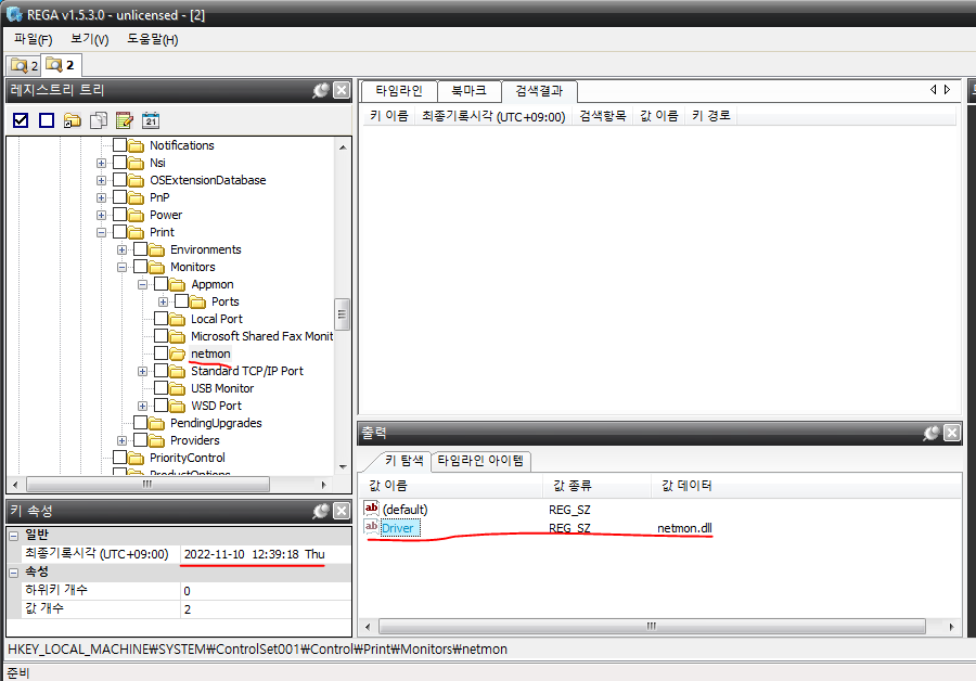 HEKY_LOCAL_MACHINE\SYSTEM\CurrentControlSet\Control\Print\Monitors\netmon 를
