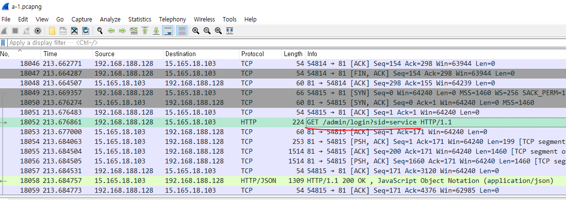 a-1.pcapng 파일을 분석해보면