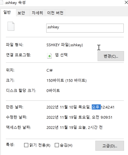 C:\..sshkey에 저장하고 있는것을 확인했다.