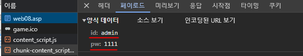 id 변수에 아이디를, pw 변수에 1111을 넣어서 보낸다.
