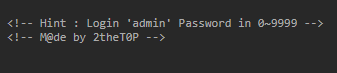 아이디는 admin 이고, 비밀번호는 0 ~ 9999 중 하나라고 한다.