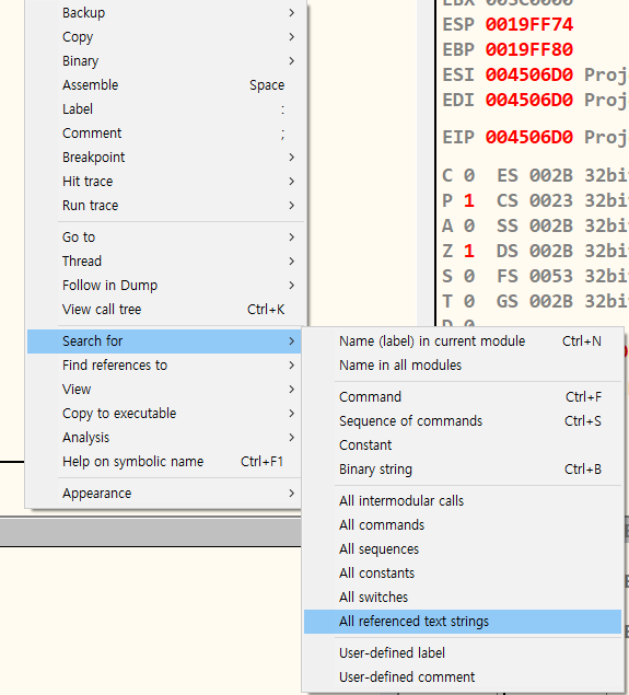 우클릭 - Search for - All referenced text strings 를 눌러서
