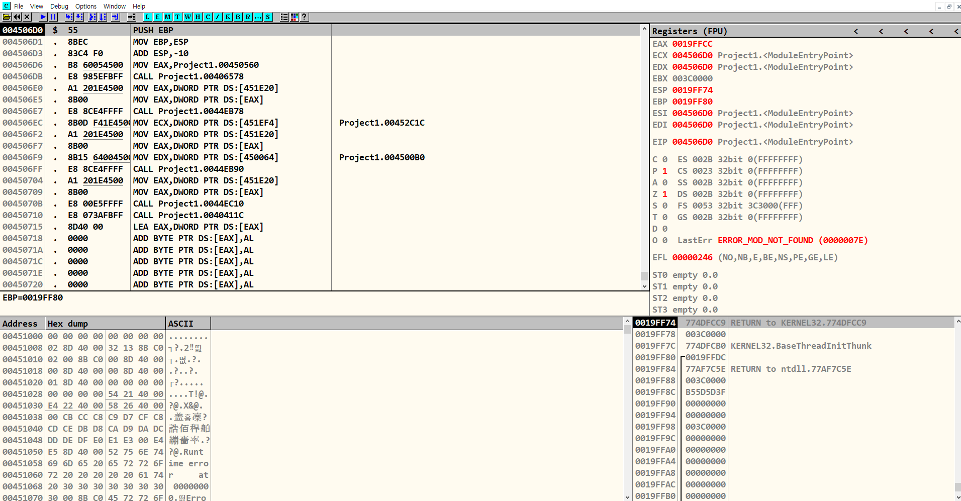 올리디버거를 이용해 해당 프로그램을 열어주었다.