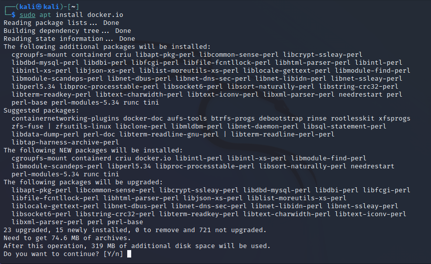 다음으로 칼리에서 권고해준대로 명령어를 이용해서 docker 패키지를 설치해준다.