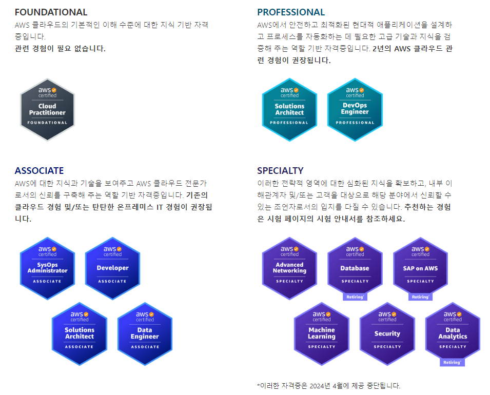Cloud Practitioner 는 그중 가장 쉬운 난이도의 자격증이고,