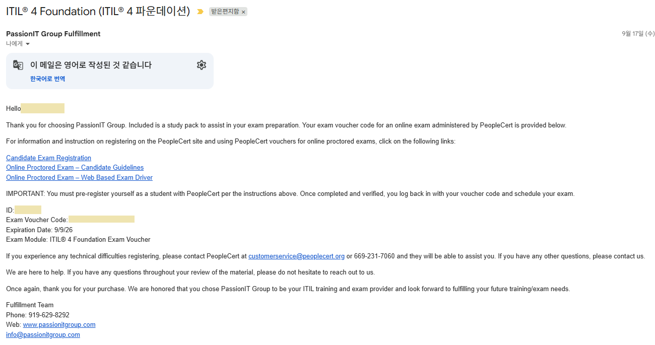 2025년 9월 취득한 ITIL V4 Foundation 자격증
