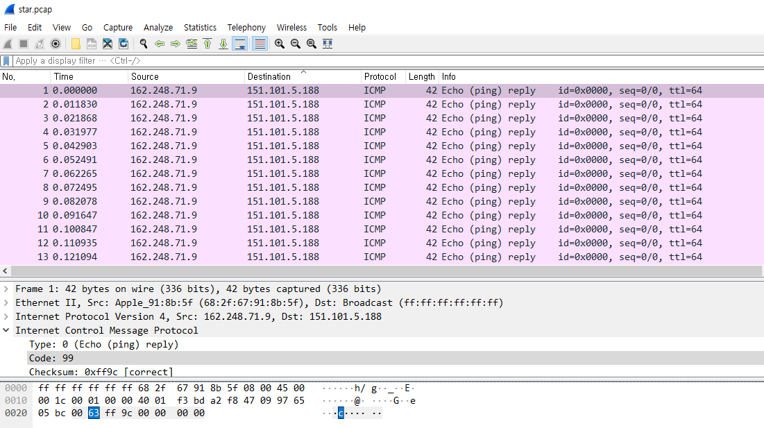 star.pcap 라는 이름의 패킷파일이 하나 주어진다.