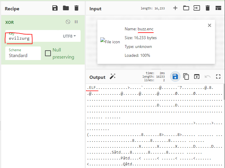 XOR 연산을 시켜주는데 KEY 부분에 evilzurg를 입력해준다.