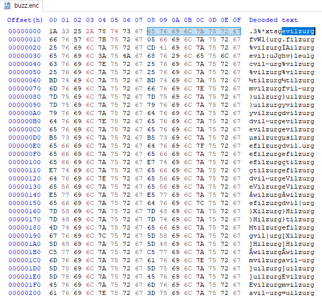 이것처럼 원래 암호화 되기 전 파일에서 0이었던 부분이 evilzurg 라는 문자열과 XOR 되면서