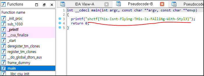 main 함수에서 플래그를 확인할 수 있다.