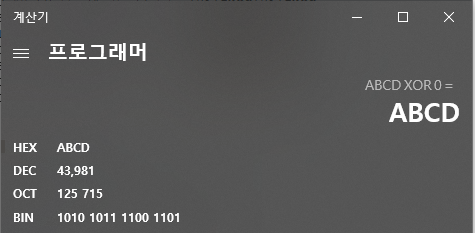 계산기를 통해서 보면 ABCD 라는 값을 0과 XOR 연산을 하면 ABCD가 그대로 나오게 된다.