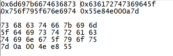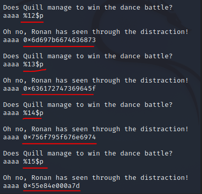 %12$p, %13$p, %14$p, %15$p를 차례로 입력해보면 6d 69 7b 66 74 이런식으로