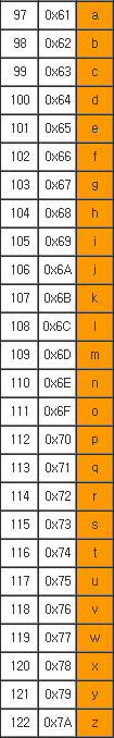 이런 값들은 ascii 코드에서 소문자에 해당하는 영역이다.