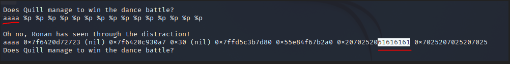 프로그램을 실행시키고 aaaa %p %p %p %p %p %p %p %p %p %p %p ... 라고 입력해본다.