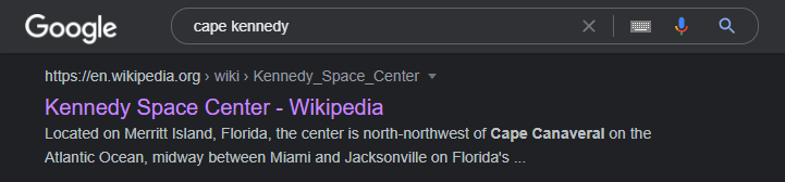바로 구글에 문제 제목인 Cape Kennedy 를 검색해보았다.