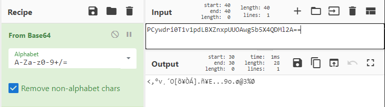 Cyberchef에 가서(https://gchq.github.io/CyberChef/) 두 값의 인코딩을 풀려고 시도해보면