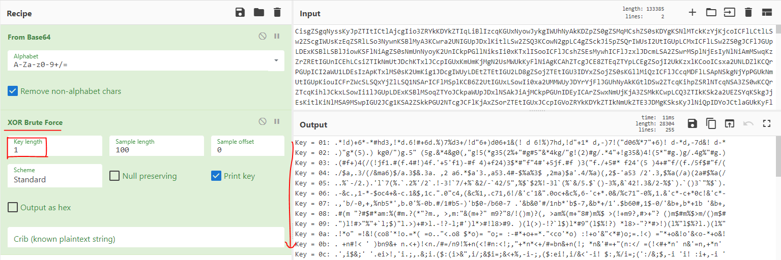key 값이 01 일때부터 ff 일때까지 각각 XOR 한 결과를 모두 출력해준다.