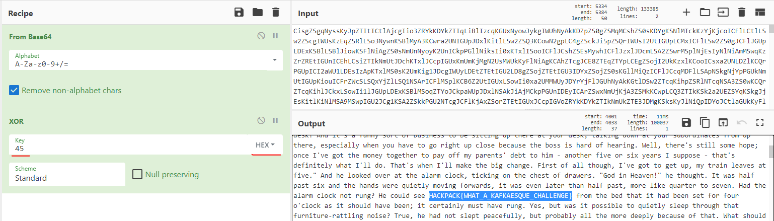 이제 다시 XOR 항목에서 key에 45를 입력하고 타입에 HEX를 주게되면