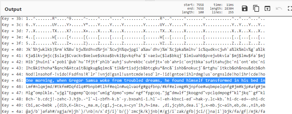 key 값이 01 일때부터 ff 일때까지 각각 XOR 한 결과를 모두 출력해준다.